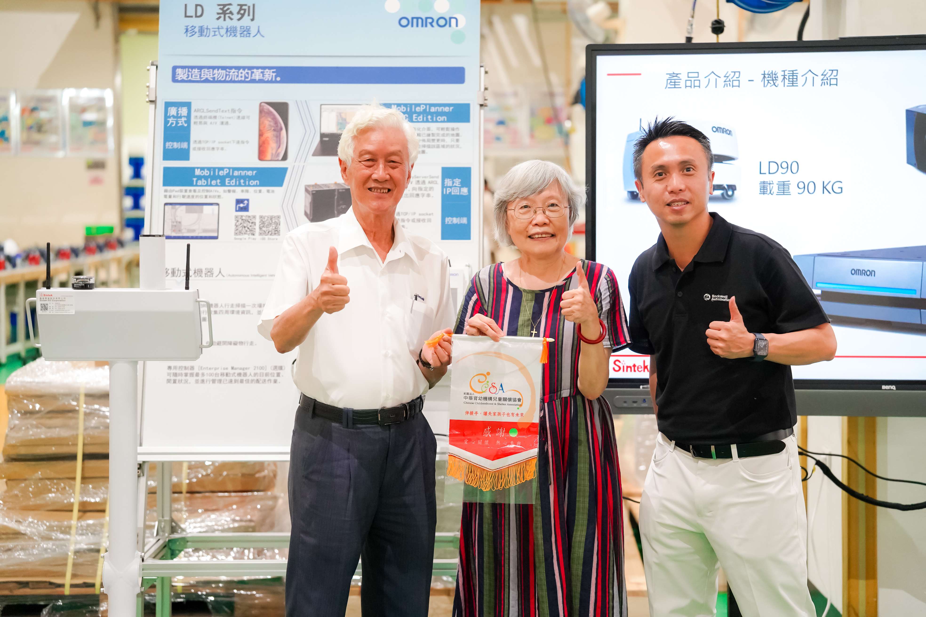 中華育幼協會CCSA創辦人洪錦芳、陳金柏董事長及洛克威爾台灣區總經理譚世宏合影。